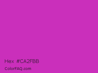 Hex #ca2fbb Color is a normal magenta color and the nearest color is Steel Pink #cc33cc. Hex code #ca2fbb and RGB value is rgb(202,47,187). In RGB color space, this color is composed of 79% red, 18% green, 73% blue, In CMYK color space, this color is composed of 0% cyan, 77% magenta, 7% yellow , 21% black , In HSL color space, this color has a hue angle of 306° , 62% saturation and 49% lightness.