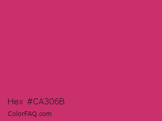 Hex #ca306b Color is a normal rose color and the nearest color is Telemagenta #cf3476. Hex code #ca306b and RGB value is rgb(202,48,107). In RGB color space, this color is composed of 79% red, 19% green, 42% blue, In CMYK color space, this color is composed of 0% cyan, 76% magenta, 47% yellow , 21% black , In HSL color space, this color has a hue angle of 337° , 62% saturation and 49% lightness.