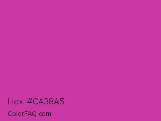 Hex #ca38a5 Color is a normal magenta color and the nearest color is Byzantine #bd33a4. Hex code #ca38a5 and RGB value is rgb(202,56,165). In RGB color space, this color is composed of 79% red, 22% green, 65% blue, In CMYK color space, this color is composed of 0% cyan, 72% magenta, 18% yellow , 21% black , In HSL color space, this color has a hue angle of 315° , 58% saturation and 51% lightness.