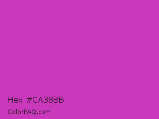 Hex #ca38bb Color is a normal magenta color and the nearest color is Steel Pink #cc33cc. Hex code #ca38bb and RGB value is rgb(202,56,187). In RGB color space, this color is composed of 79% red, 22% green, 73% blue, In CMYK color space, this color is composed of 0% cyan, 72% magenta, 7% yellow , 21% black , In HSL color space, this color has a hue angle of 306° , 58% saturation and 51% lightness.