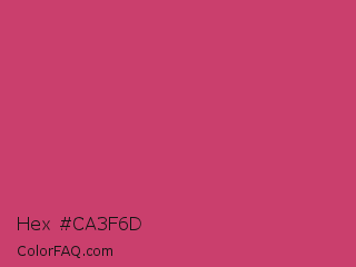 Hex #ca3f6d Color is a normal rose color and the nearest color is Fuchsia Rose #c74375. Hex code #ca3f6d and RGB value is rgb(202,63,109). In RGB color space, this color is composed of 79% red, 25% green, 43% blue, In CMYK color space, this color is composed of 0% cyan, 69% magenta, 46% yellow , 21% black , In HSL color space, this color has a hue angle of 340° , 57% saturation and 52% lightness.