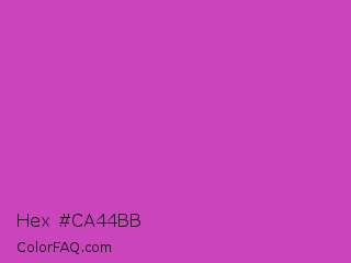 Hex #ca44bb Color is a normal magenta color and the nearest color is Fuchsia Pink #c154c1. Hex code #ca44bb and RGB value is rgb(202,68,187). In RGB color space, this color is composed of 79% red, 27% green, 73% blue, In CMYK color space, this color is composed of 0% cyan, 66% magenta, 7% yellow , 21% black , In HSL color space, this color has a hue angle of 307° , 56% saturation and 53% lightness.