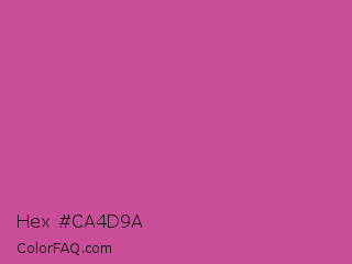 Hex #ca4d9a Color is a normal magenta color and the nearest color is Mulberry #c54b8c. Hex code #ca4d9a and RGB value is rgb(202,77,154). In RGB color space, this color is composed of 79% red, 30% green, 60% blue, In CMYK color space, this color is composed of 0% cyan, 62% magenta, 24% yellow , 21% black , In HSL color space, this color has a hue angle of 323° , 54% saturation and 55% lightness.