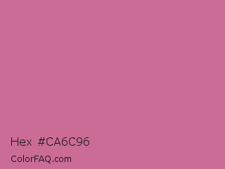 Hex #ca6c96 Color is a light rose color and the nearest color is Hopbush #d06da1. Hex code #ca6c96 and RGB value is rgb(202,108,150). In RGB color space, this color is composed of 79% red, 42% green, 59% blue, In CMYK color space, this color is composed of 0% cyan, 47% magenta, 26% yellow , 21% black , In HSL color space, this color has a hue angle of 333° , 47% saturation and 61% lightness.