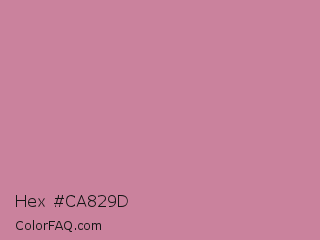 Hex #ca829d Color is a light rose color and the nearest color is Puce #cc8899. Hex code #ca829d and RGB value is rgb(202,130,157). In RGB color space, this color is composed of 79% red, 51% green, 62% blue, In CMYK color space, this color is composed of 0% cyan, 36% magenta, 22% yellow , 21% black , In HSL color space, this color has a hue angle of 338° , 40% saturation and 65% lightness.