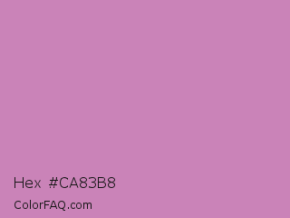 Hex #ca83b8 Color is a light magenta color and the nearest color is Middle Purple #d982b5. Hex code #ca83b8 and RGB value is rgb(202,131,184). In RGB color space, this color is composed of 79% red, 51% green, 72% blue, In CMYK color space, this color is composed of 0% cyan, 35% magenta, 9% yellow , 21% black , In HSL color space, this color has a hue angle of 315° , 40% saturation and 65% lightness.