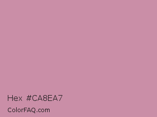 Hex #ca8ea7 Color is a light rose color and the nearest color is Viola #cb8fa9. Hex code #ca8ea7 and RGB value is rgb(202,142,167). In RGB color space, this color is composed of 79% red, 56% green, 65% blue, In CMYK color space, this color is composed of 0% cyan, 30% magenta, 17% yellow , 21% black , In HSL color space, this color has a hue angle of 335° , 36% saturation and 67% lightness.