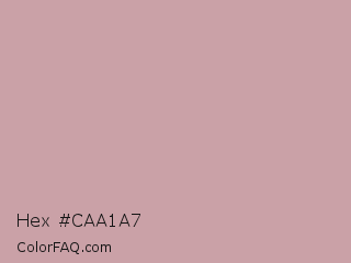 Hex #caa1a7 Color is a light red color and the nearest color is Careys Pink #d29eaa. Hex code #caa1a7 and RGB value is rgb(202,161,167). In RGB color space, this color is composed of 79% red, 63% green, 65% blue, In CMYK color space, this color is composed of 0% cyan, 20% magenta, 17% yellow , 21% black , In HSL color space, this color has a hue angle of 351° , 28% saturation and 71% lightness.