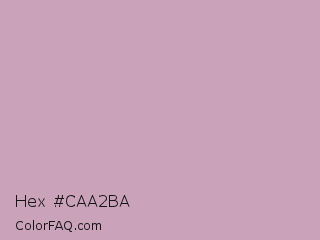 Hex #caa2ba Color is a light magenta color and the nearest color is Lily #c8aabf. Hex code #caa2ba and RGB value is rgb(202,162,186). In RGB color space, this color is composed of 79% red, 64% green, 73% blue, In CMYK color space, this color is composed of 0% cyan, 20% magenta, 8% yellow , 21% black , In HSL color space, this color has a hue angle of 324° , 27% saturation and 71% lightness.