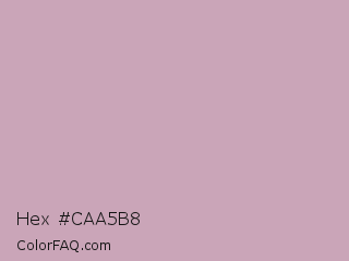 Hex #caa5b8 Color is a light rose color and the nearest color is Lily #c8aabf. Hex code #caa5b8 and RGB value is rgb(202,165,184). In RGB color space, this color is composed of 79% red, 65% green, 72% blue, In CMYK color space, this color is composed of 0% cyan, 18% magenta, 9% yellow , 21% black , In HSL color space, this color has a hue angle of 329° , 26% saturation and 72% lightness.