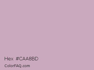 Hex #caa8bd Color is a light magenta color and the nearest color is Lily #c8aabf. Hex code #caa8bd and RGB value is rgb(202,168,189). In RGB color space, this color is composed of 79% red, 66% green, 74% blue, In CMYK color space, this color is composed of 0% cyan, 17% magenta, 6% yellow , 21% black , In HSL color space, this color has a hue angle of 323° , 24% saturation and 73% lightness.