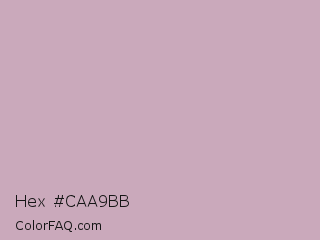Hex #caa9bb Color is a light magenta color and the nearest color is Lily #c8aabf. Hex code #caa9bb and RGB value is rgb(202,169,187). In RGB color space, this color is composed of 79% red, 66% green, 73% blue, In CMYK color space, this color is composed of 0% cyan, 16% magenta, 7% yellow , 21% black , In HSL color space, this color has a hue angle of 327° , 24% saturation and 73% lightness.
