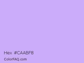 Hex #caabf8 Color is a very light violet color and the nearest color is Pale Violet #cc99ff. Hex code #caabf8 and RGB value is rgb(202,171,248). In RGB color space, this color is composed of 79% red, 67% green, 97% blue, In CMYK color space, this color is composed of 19% cyan, 31% magenta, 0% yellow , 3% black , In HSL color space, this color has a hue angle of 264° , 85% saturation and 82% lightness.