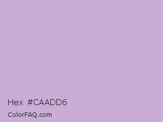 Hex #caadd6 Color is a light purple color and the nearest color is Tropical Violet #cda4de. Hex code #caadd6 and RGB value is rgb(202,173,214). In RGB color space, this color is composed of 79% red, 68% green, 84% blue, In CMYK color space, this color is composed of 6% cyan, 19% magenta, 0% yellow , 16% black , In HSL color space, this color has a hue angle of 282° , 33% saturation and 76% lightness.