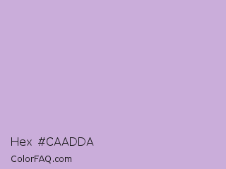 Hex #caadda Color is a light purple color and the nearest color is Tropical Violet #cda4de. Hex code #caadda and RGB value is rgb(202,173,218). In RGB color space, this color is composed of 79% red, 68% green, 85% blue, In CMYK color space, this color is composed of 7% cyan, 21% magenta, 0% yellow , 15% black , In HSL color space, this color has a hue angle of 279° , 38% saturation and 77% lightness.