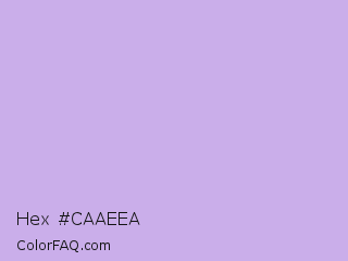 Hex #caaeea Color is a light violet color and the nearest color is Tropical Violet #cda4de. Hex code #caaeea and RGB value is rgb(202,174,234). In RGB color space, this color is composed of 79% red, 68% green, 92% blue, In CMYK color space, this color is composed of 14% cyan, 26% magenta, 0% yellow , 8% black , In HSL color space, this color has a hue angle of 268° , 59% saturation and 80% lightness.