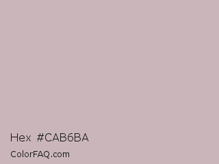 Hex #cab6ba Color is a light red color and the nearest color is Cold Turkey #cebaba. Hex code #cab6ba and RGB value is rgb(202,182,186). In RGB color space, this color is composed of 79% red, 71% green, 73% blue, In CMYK color space, this color is composed of 0% cyan, 10% magenta, 8% yellow , 21% black , In HSL color space, this color has a hue angle of 348° , 16% saturation and 75% lightness.