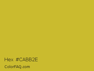 Hex #cabb2e Color is a normal yellow color and the nearest color is Earls Green #c9b93b. Hex code #cabb2e and RGB value is rgb(202,187,46). In RGB color space, this color is composed of 79% red, 73% green, 18% blue, In CMYK color space, this color is composed of 0% cyan, 7% magenta, 77% yellow , 21% black , In HSL color space, this color has a hue angle of 54° , 63% saturation and 49% lightness.