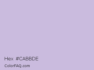 Hex #cabbde Color is a light violet color and the nearest color is Prelude #d0c0e5. Hex code #cabbde and RGB value is rgb(202,187,222). In RGB color space, this color is composed of 79% red, 73% green, 87% blue, In CMYK color space, this color is composed of 9% cyan, 16% magenta, 0% yellow , 13% black , In HSL color space, this color has a hue angle of 266° , 35% saturation and 80% lightness.