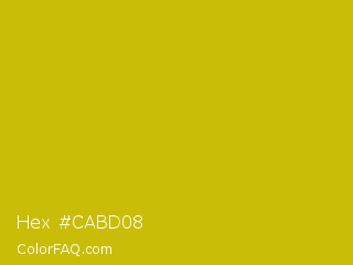 Hex #cabd08 Color is a normal yellow color and the nearest color is Galliano #dcb20c. Hex code #cabd08 and RGB value is rgb(202,189,8). In RGB color space, this color is composed of 79% red, 74% green, 3% blue, In CMYK color space, this color is composed of 0% cyan, 6% magenta, 96% yellow , 21% black , In HSL color space, this color has a hue angle of 56° , 92% saturation and 41% lightness.