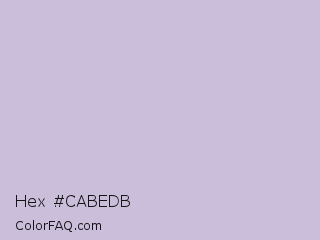 Hex #cabedb Color is a light violet color and the nearest color is Blue Haze #bfbed8. Hex code #cabedb and RGB value is rgb(202,190,219). In RGB color space, this color is composed of 79% red, 75% green, 86% blue, In CMYK color space, this color is composed of 8% cyan, 13% magenta, 0% yellow , 14% black , In HSL color space, this color has a hue angle of 265° , 29% saturation and 80% lightness.