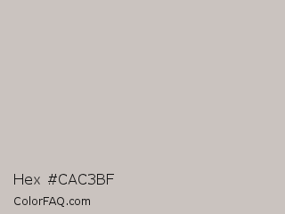 Hex #cac3bf Color is a light orange color and the nearest color is Cloud #c7c4bf. Hex code #cac3bf and RGB value is rgb(202,195,191). In RGB color space, this color is composed of 79% red, 76% green, 75% blue, In CMYK color space, this color is composed of 0% cyan, 3% magenta, 5% yellow , 21% black , In HSL color space, this color has a hue angle of 22° , 9% saturation and 77% lightness.