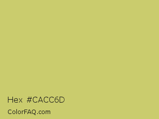 Hex #cacc6d Color is a light yellow color and the nearest color is Tacha #d6c562. Hex code #cacc6d and RGB value is rgb(202,204,109). In RGB color space, this color is composed of 79% red, 80% green, 43% blue, In CMYK color space, this color is composed of 1% cyan, 0% magenta, 47% yellow , 20% black , In HSL color space, this color has a hue angle of 61° , 48% saturation and 61% lightness.