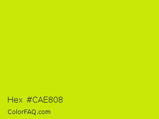 Hex #cae808 Color is a normal yellow color and the nearest color is Las Palmas #c6e610. Hex code #cae808 and RGB value is rgb(202,232,8). In RGB color space, this color is composed of 79% red, 91% green, 3% blue, In CMYK color space, this color is composed of 13% cyan, 0% magenta, 97% yellow , 9% black , In HSL color space, this color has a hue angle of 68° , 93% saturation and 47% lightness.