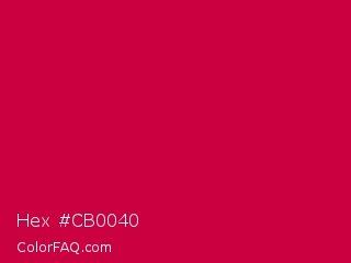 Hex #cb0040 Color is a normal rose color and the nearest color is Utah Crimson #d3003f. Hex code #cb0040 and RGB value is rgb(203,0,64). In RGB color space, this color is composed of 80% red, 0% green, 25% blue, In CMYK color space, this color is composed of 0% cyan, 100% magenta, 68% yellow , 20% black , In HSL color space, this color has a hue angle of 341° , 100% saturation and 40% lightness.