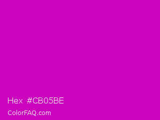 Hex #cb05be Color is a normal magenta color and the nearest color is Deep Magenta #cc00cc. Hex code #cb05be and RGB value is rgb(203,5,190). In RGB color space, this color is composed of 80% red, 2% green, 75% blue, In CMYK color space, this color is composed of 0% cyan, 98% magenta, 6% yellow , 20% black , In HSL color space, this color has a hue angle of 304° , 95% saturation and 41% lightness.