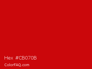 Hex #cb070b Color is a normal red color and the nearest color is Venetian Red #c80815. Hex code #cb070b and RGB value is rgb(203,7,11). In RGB color space, this color is composed of 80% red, 3% green, 4% blue, In CMYK color space, this color is composed of 0% cyan, 97% magenta, 95% yellow , 20% black , In HSL color space, this color has a hue angle of 359° , 93% saturation and 41% lightness.