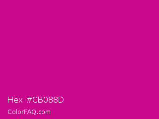 Hex #cb088d Color is a normal magenta color and the nearest color is Red Violet #c71585. Hex code #cb088d and RGB value is rgb(203,8,141). In RGB color space, this color is composed of 80% red, 3% green, 55% blue, In CMYK color space, this color is composed of 0% cyan, 96% magenta, 31% yellow , 20% black , In HSL color space, this color has a hue angle of 319° , 92% saturation and 41% lightness.