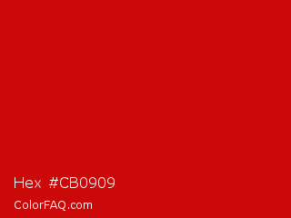 Hex #cb0909 Color is a normal red color and the nearest color is Venetian Red #c80815. Hex code #cb0909 and RGB value is rgb(203,9,9). In RGB color space, this color is composed of 80% red, 4% green, 4% blue, In CMYK color space, this color is composed of 0% cyan, 96% magenta, 96% yellow , 20% black , In HSL color space, this color has a hue angle of 0° , 92% saturation and 42% lightness.