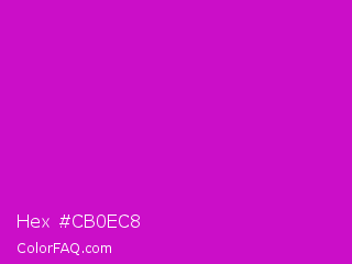 Hex #cb0ec8 Color is a normal magenta color and the nearest color is Deep Magenta #cc00cc. Hex code #cb0ec8 and RGB value is rgb(203,14,200). In RGB color space, this color is composed of 80% red, 5% green, 78% blue, In CMYK color space, this color is composed of 0% cyan, 93% magenta, 1% yellow , 20% black , In HSL color space, this color has a hue angle of 301° , 87% saturation and 43% lightness.