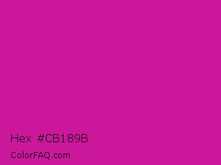 Hex #cb189b Color is a normal magenta color and the nearest color is Royal Fuchsia #ca2c92. Hex code #cb189b and RGB value is rgb(203,24,155). In RGB color space, this color is composed of 80% red, 9% green, 61% blue, In CMYK color space, this color is composed of 0% cyan, 88% magenta, 24% yellow , 20% black , In HSL color space, this color has a hue angle of 316° , 79% saturation and 45% lightness.