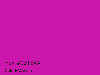 Hex #cb18aa Color is a normal magenta color and the nearest color is Byzantine #bd33a4. Hex code #cb18aa and RGB value is rgb(203,24,170). In RGB color space, this color is composed of 80% red, 9% green, 67% blue, In CMYK color space, this color is composed of 0% cyan, 88% magenta, 16% yellow , 20% black , In HSL color space, this color has a hue angle of 311° , 79% saturation and 45% lightness.