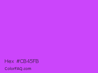 Hex #cb45fb Color is a light purple color and the nearest color is Medium Orchid #ba55d3. Hex code #cb45fb and RGB value is rgb(203,69,251). In RGB color space, this color is composed of 80% red, 27% green, 98% blue, In CMYK color space, this color is composed of 19% cyan, 73% magenta, 0% yellow , 2% black , In HSL color space, this color has a hue angle of 284° , 96% saturation and 63% lightness.