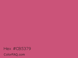 Hex #cb5379 Color is a normal rose color and the nearest color is Ruber #ce4676. Hex code #cb5379 and RGB value is rgb(203,83,121). In RGB color space, this color is composed of 80% red, 33% green, 47% blue, In CMYK color space, this color is composed of 0% cyan, 59% magenta, 40% yellow , 20% black , In HSL color space, this color has a hue angle of 341° , 54% saturation and 56% lightness.