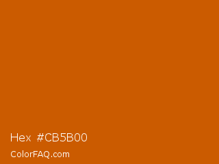 Hex #cb5b00 Color is a normal orange color and the nearest color is Tenn #cd5700. Hex code #cb5b00 and RGB value is rgb(203,91,0). In RGB color space, this color is composed of 80% red, 36% green, 0% blue, In CMYK color space, this color is composed of 0% cyan, 55% magenta, 100% yellow , 20% black , In HSL color space, this color has a hue angle of 27° , 100% saturation and 40% lightness.