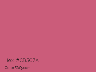 Hex #cb5c7a Color is a normal rose color and the nearest color is Cinnamon Satin #cd607e. Hex code #cb5c7a and RGB value is rgb(203,92,122). In RGB color space, this color is composed of 80% red, 36% green, 48% blue, In CMYK color space, this color is composed of 0% cyan, 55% magenta, 40% yellow , 20% black , In HSL color space, this color has a hue angle of 344° , 52% saturation and 58% lightness.