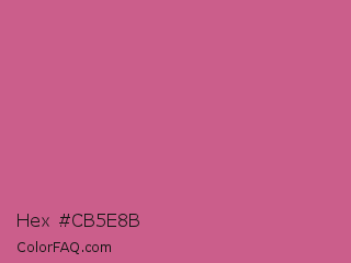 Hex #cb5e8b Color is a normal rose color and the nearest color is Cinnamon Satin #cd607e. Hex code #cb5e8b and RGB value is rgb(203,94,139). In RGB color space, this color is composed of 80% red, 37% green, 55% blue, In CMYK color space, this color is composed of 0% cyan, 54% magenta, 32% yellow , 20% black , In HSL color space, this color has a hue angle of 335° , 51% saturation and 58% lightness.
