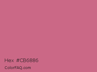 Hex #cb6886 Color is a normal rose color and the nearest color is Cinnamon Satin #cd607e. Hex code #cb6886 and RGB value is rgb(203,104,134). In RGB color space, this color is composed of 80% red, 41% green, 53% blue, In CMYK color space, this color is composed of 0% cyan, 49% magenta, 34% yellow , 20% black , In HSL color space, this color has a hue angle of 342° , 49% saturation and 60% lightness.