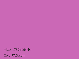 Hex #cb68b6 Color is a normal magenta color and the nearest color is Sky Magenta #cf71af. Hex code #cb68b6 and RGB value is rgb(203,104,182). In RGB color space, this color is composed of 80% red, 41% green, 71% blue, In CMYK color space, this color is composed of 0% cyan, 49% magenta, 10% yellow , 20% black , In HSL color space, this color has a hue angle of 313° , 49% saturation and 60% lightness.