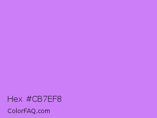 Hex #cb7ef8 Color is a light purple color and the nearest color is Heliotrope #df73ff. Hex code #cb7ef8 and RGB value is rgb(203,126,248). In RGB color space, this color is composed of 80% red, 49% green, 97% blue, In CMYK color space, this color is composed of 18% cyan, 49% magenta, 0% yellow , 3% black , In HSL color space, this color has a hue angle of 278° , 90% saturation and 73% lightness.