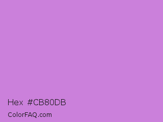 Hex #cb80db Color is a light purple color and the nearest color is French Mauve #d473d4. Hex code #cb80db and RGB value is rgb(203,128,219). In RGB color space, this color is composed of 80% red, 50% green, 86% blue, In CMYK color space, this color is composed of 7% cyan, 42% magenta, 0% yellow , 14% black , In HSL color space, this color has a hue angle of 289° , 56% saturation and 68% lightness.