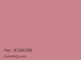 Hex #cb838b Color is a light red color and the nearest color is Puce #cc8899. Hex code #cb838b and RGB value is rgb(203,131,139). In RGB color space, this color is composed of 80% red, 51% green, 55% blue, In CMYK color space, this color is composed of 0% cyan, 35% magenta, 32% yellow , 20% black , In HSL color space, this color has a hue angle of 353° , 41% saturation and 65% lightness.