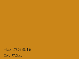Hex #cb8618 Color is a normal orange color and the nearest color is Geebung #d18f1b. Hex code #cb8618 and RGB value is rgb(203,134,24). In RGB color space, this color is composed of 80% red, 53% green, 9% blue, In CMYK color space, this color is composed of 0% cyan, 34% magenta, 88% yellow , 20% black , In HSL color space, this color has a hue angle of 37° , 79% saturation and 45% lightness.