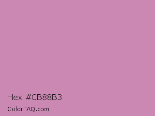 Hex #cb88b3 Color is a light magenta color and the nearest color is Viola #cb8fa9. Hex code #cb88b3 and RGB value is rgb(203,136,179). In RGB color space, this color is composed of 80% red, 53% green, 70% blue, In CMYK color space, this color is composed of 0% cyan, 33% magenta, 12% yellow , 20% black , In HSL color space, this color has a hue angle of 321° , 39% saturation and 66% lightness.