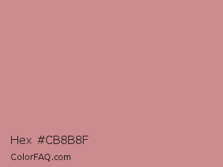 Hex #cb8b8f Color is a light red color and the nearest color is Oriental Pink #c69191. Hex code #cb8b8f and RGB value is rgb(203,139,143). In RGB color space, this color is composed of 80% red, 55% green, 56% blue, In CMYK color space, this color is composed of 0% cyan, 32% magenta, 30% yellow , 20% black , In HSL color space, this color has a hue angle of 356° , 38% saturation and 67% lightness.