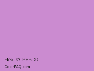 Hex #cb8bd0 Color is a light magenta color and the nearest color is Light Grayish Magenta #cc99cc. Hex code #cb8bd0 and RGB value is rgb(203,139,208). In RGB color space, this color is composed of 80% red, 55% green, 82% blue, In CMYK color space, this color is composed of 2% cyan, 33% magenta, 0% yellow , 18% black , In HSL color space, this color has a hue angle of 296° , 42% saturation and 68% lightness.